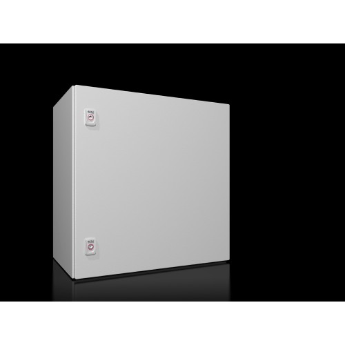 AX Wandkast, met 1 deur, 600x600x350 mm BxHxD, plaatstaal, RAL 7035, met montageplaat en wartelplaat onder, knevelsluiting (dubbelbaard)Omschrijving